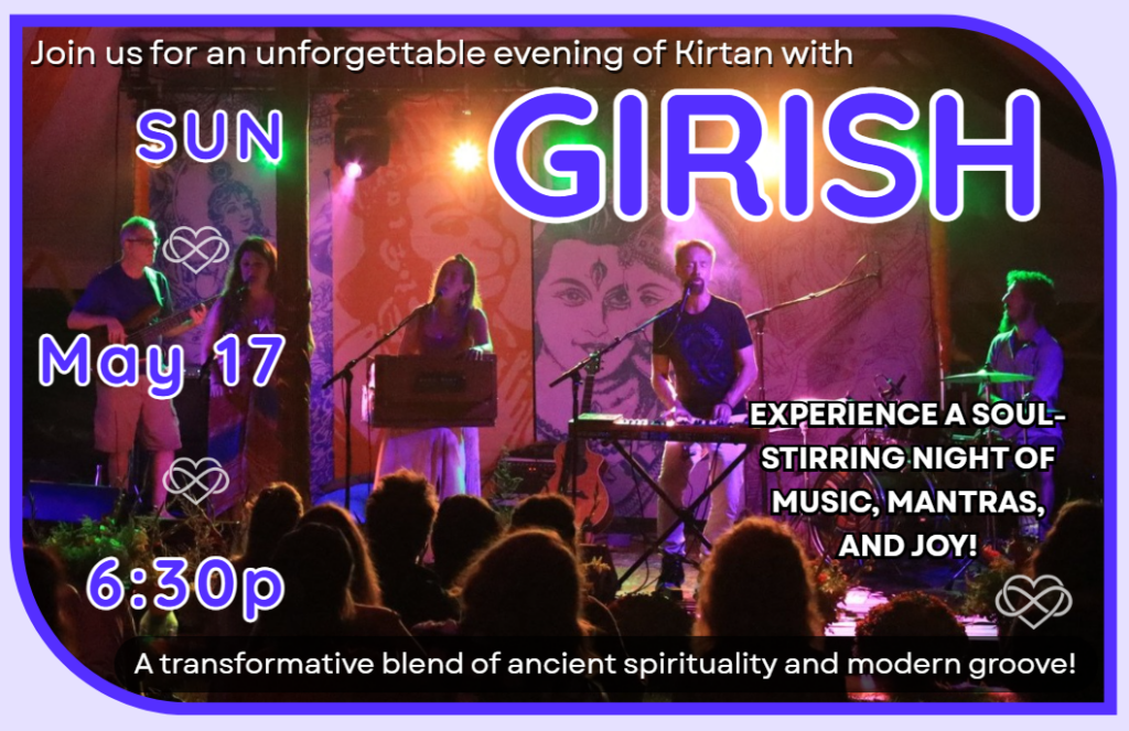 Former monk, award-winning musician, and wordsmith Girish sings traditional Sanskrit mantras with a modern, funky, yet deeply devotional twist, creating a moving and uplifting experience. Backed by his dynamic band, Girish invites you to sing, chant, and dance in a celebration that bridges the heart and soul.